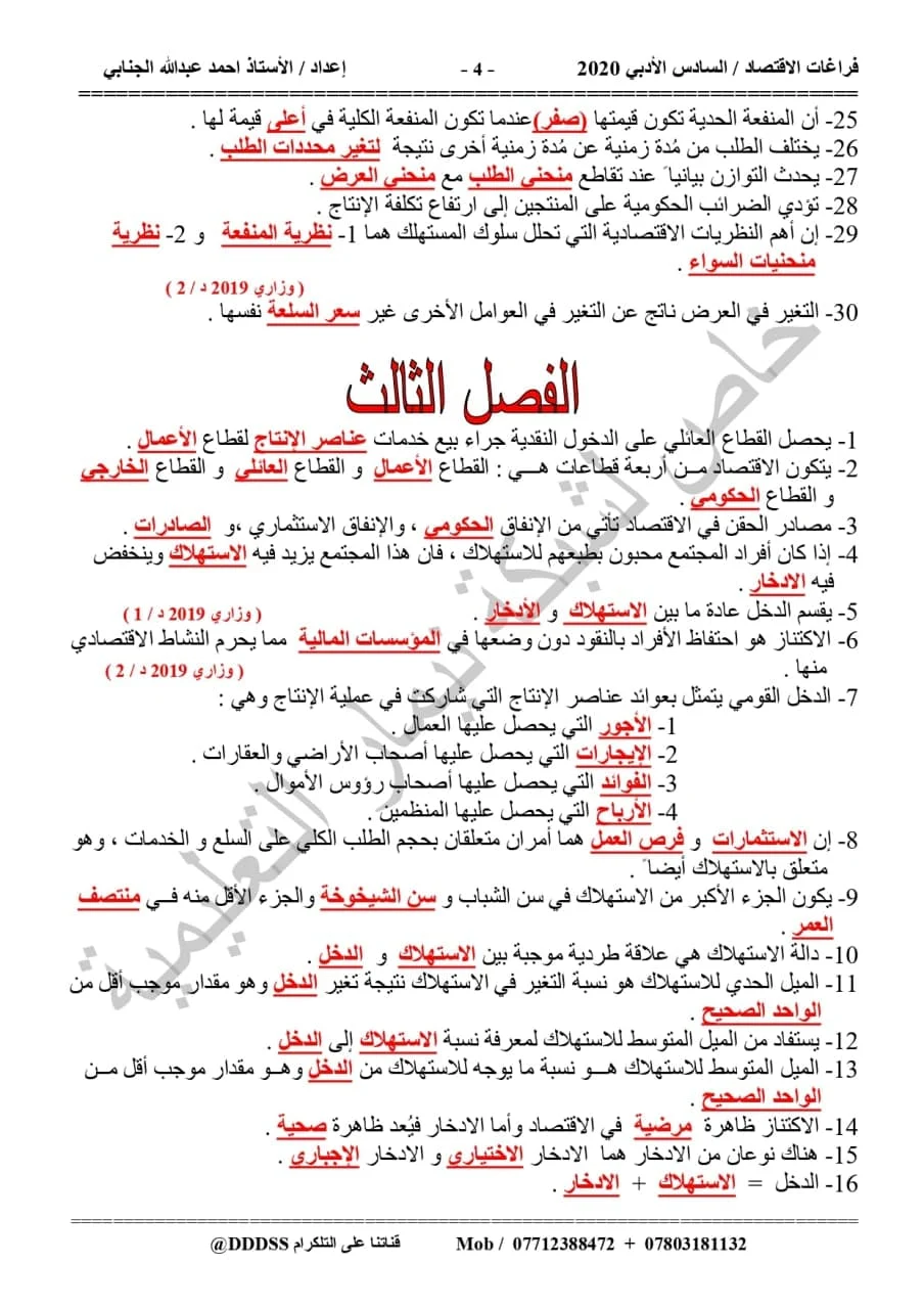 ملزمه مكونه من 3 اوراق للاستاذ احمد عبدالله الجنابي لاربع فصول من ماده الاقتصاد