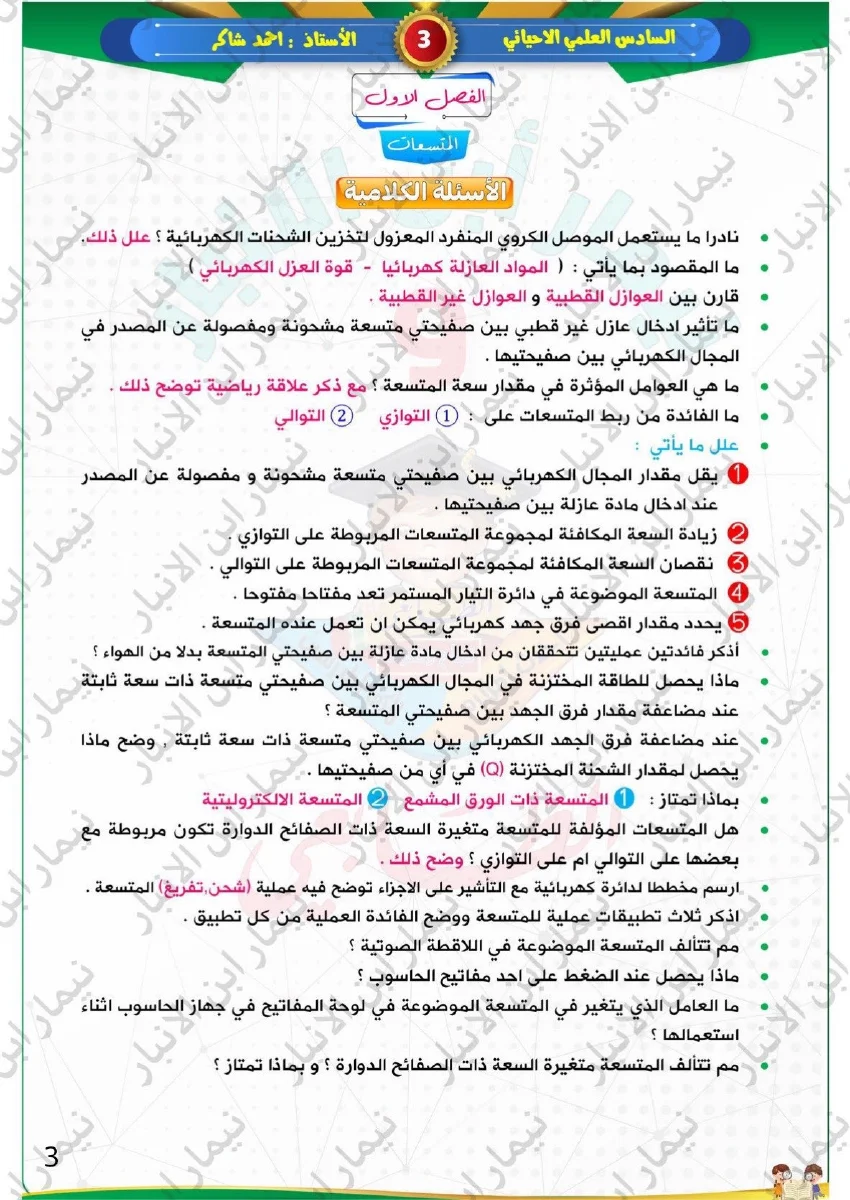 والخاصه بمادة الفيزياء للصف السادس الاحيائي