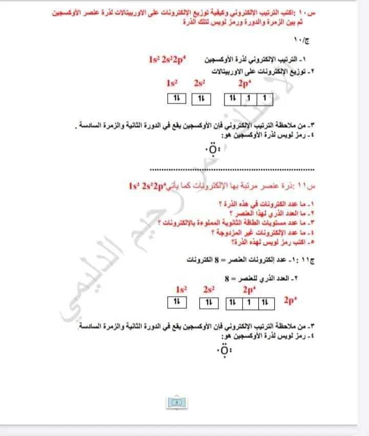 الشرح والحل المفصل لجميع مسائل مادة الكيمياء لصف الثالث متوسط من اعداد الاستاذ عمر رحيم الدليمي مكون من اربع ورقات اي 8 صفحات فقط