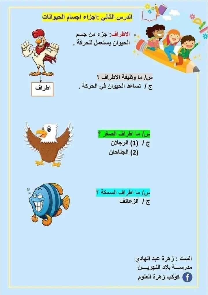 مختصر وملخص الاسئلة المهمه في مادة العلوم لصف الاول الابتدائي بـ 10 ورقات بشكل مبسط