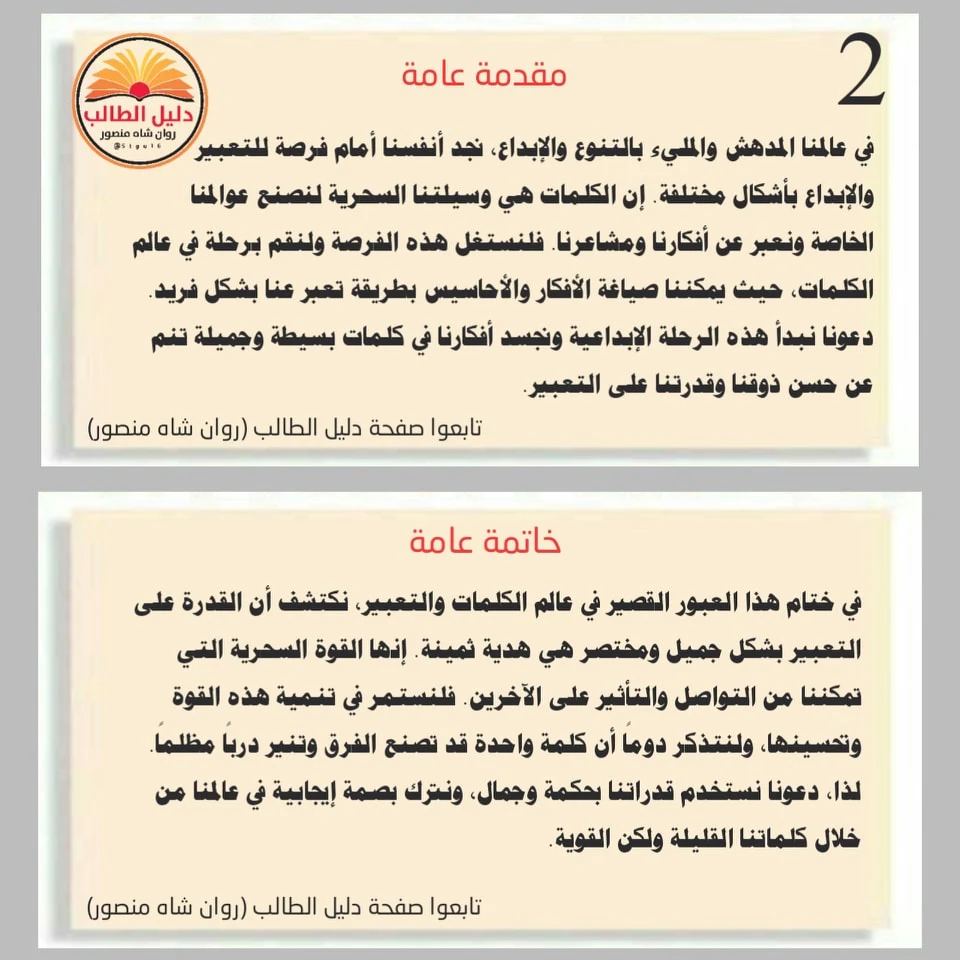 افضل المقدمة والخاتمه في انشاءات مادة العربي لكل المراحل وشامل جميع المواضيع عدد 7 خاتمه و7 مقدمة